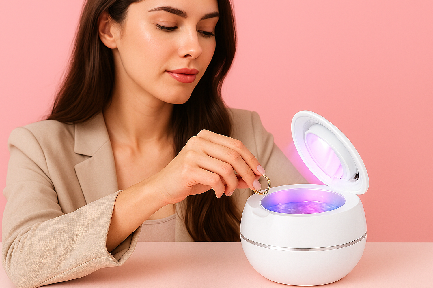 Simply fill the tank with water, place your jewelry inside, and press the button.